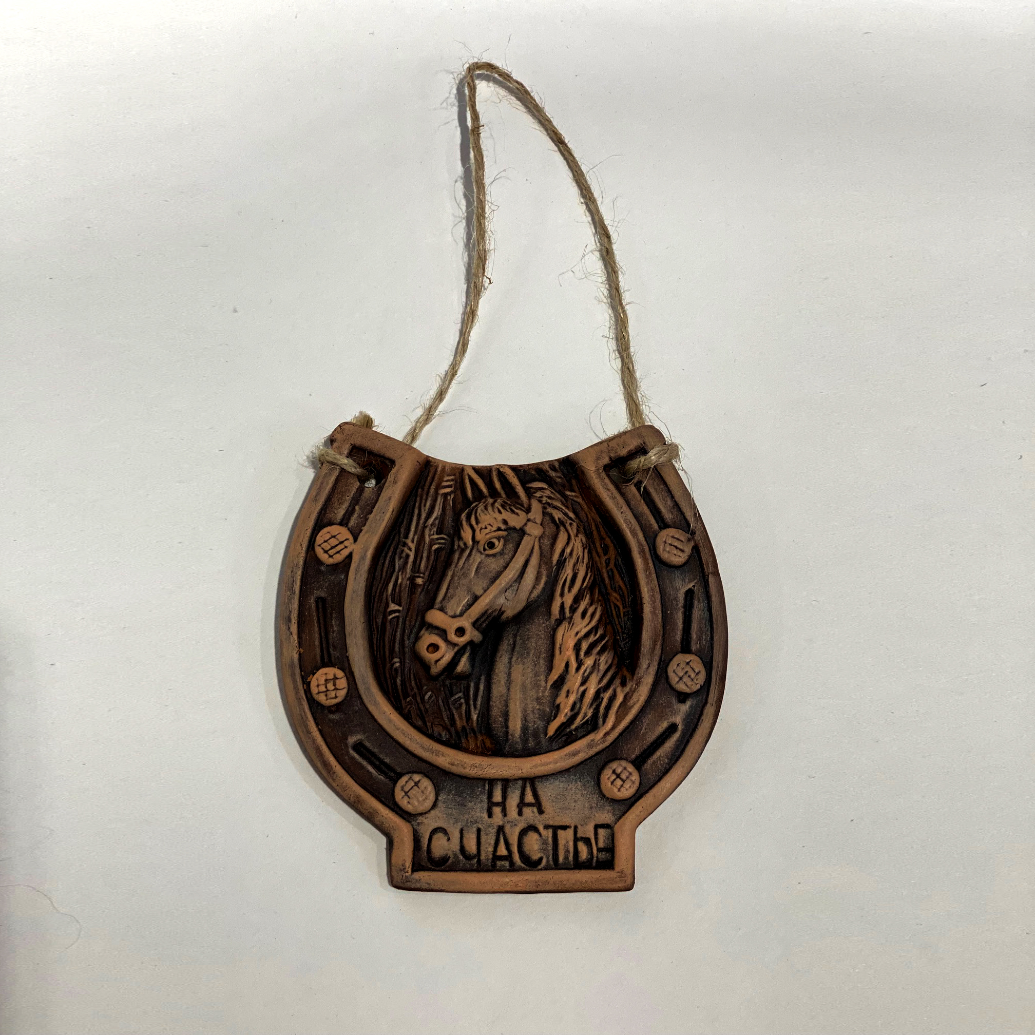 Белорусский сувенир «Подкова на счастье» с головой лошади (керамика)