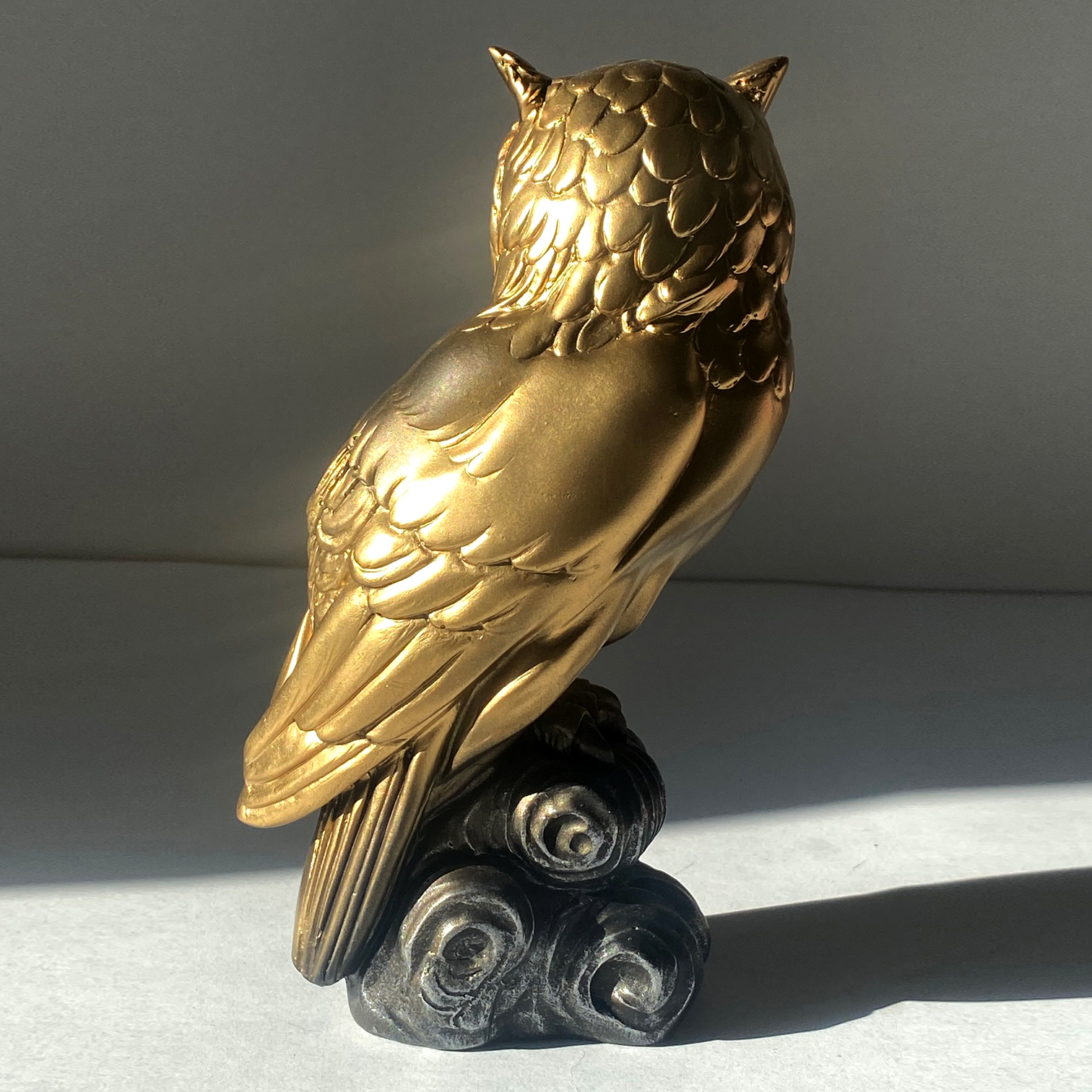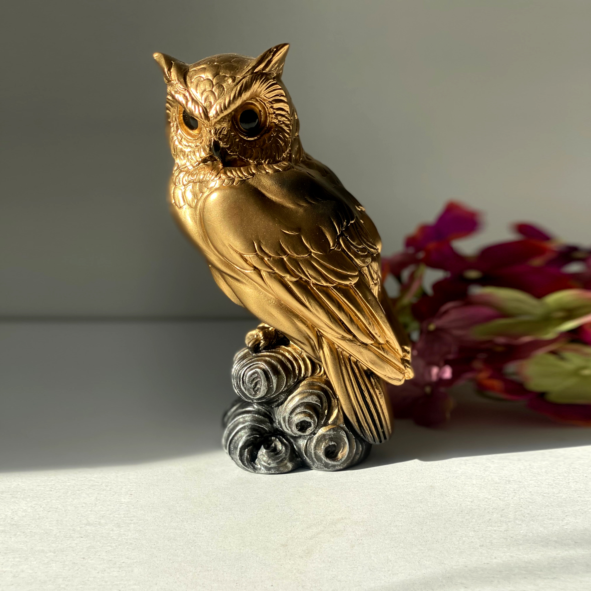 • Удачное сочетание: Золотая сова на темном постаменте выглядит контрастно и современно. Она легко вписывается в классические интерьеры, а также в пространства в стиле лофт или ар-деко.