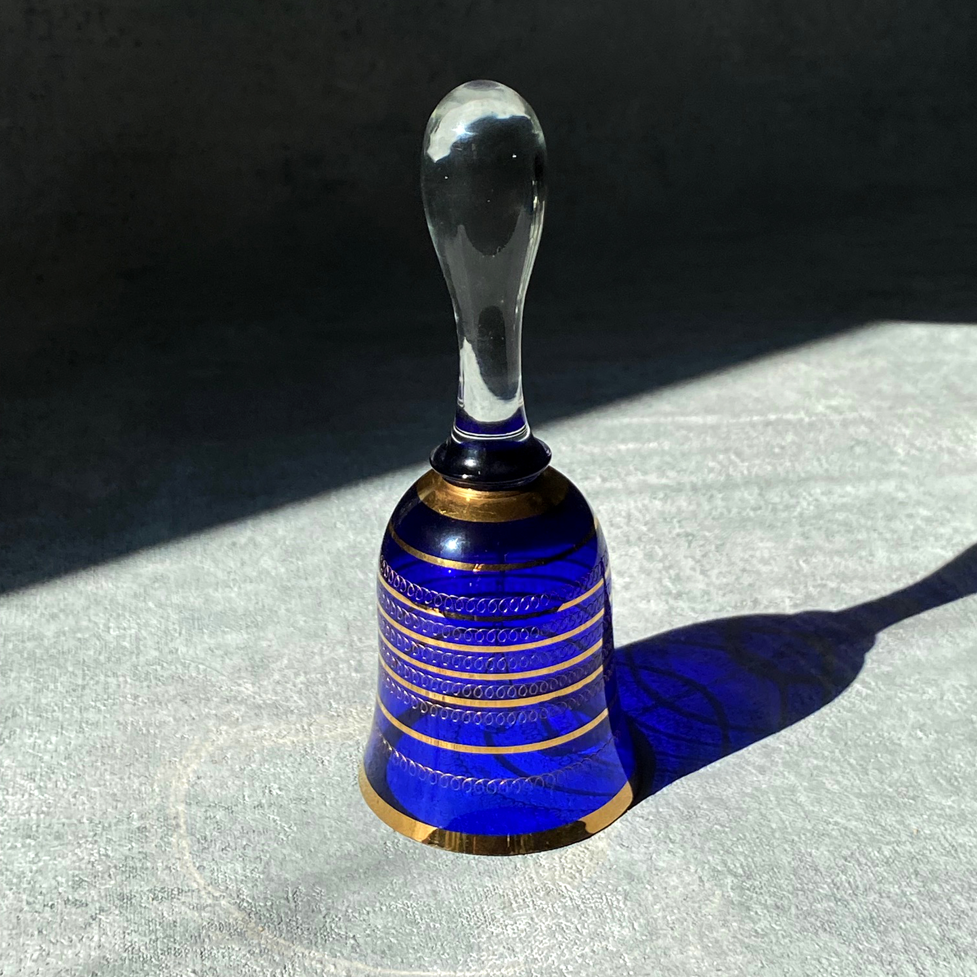 Колокольчик винтажный. Богемское стекло, кобальт, золочение, пантография.