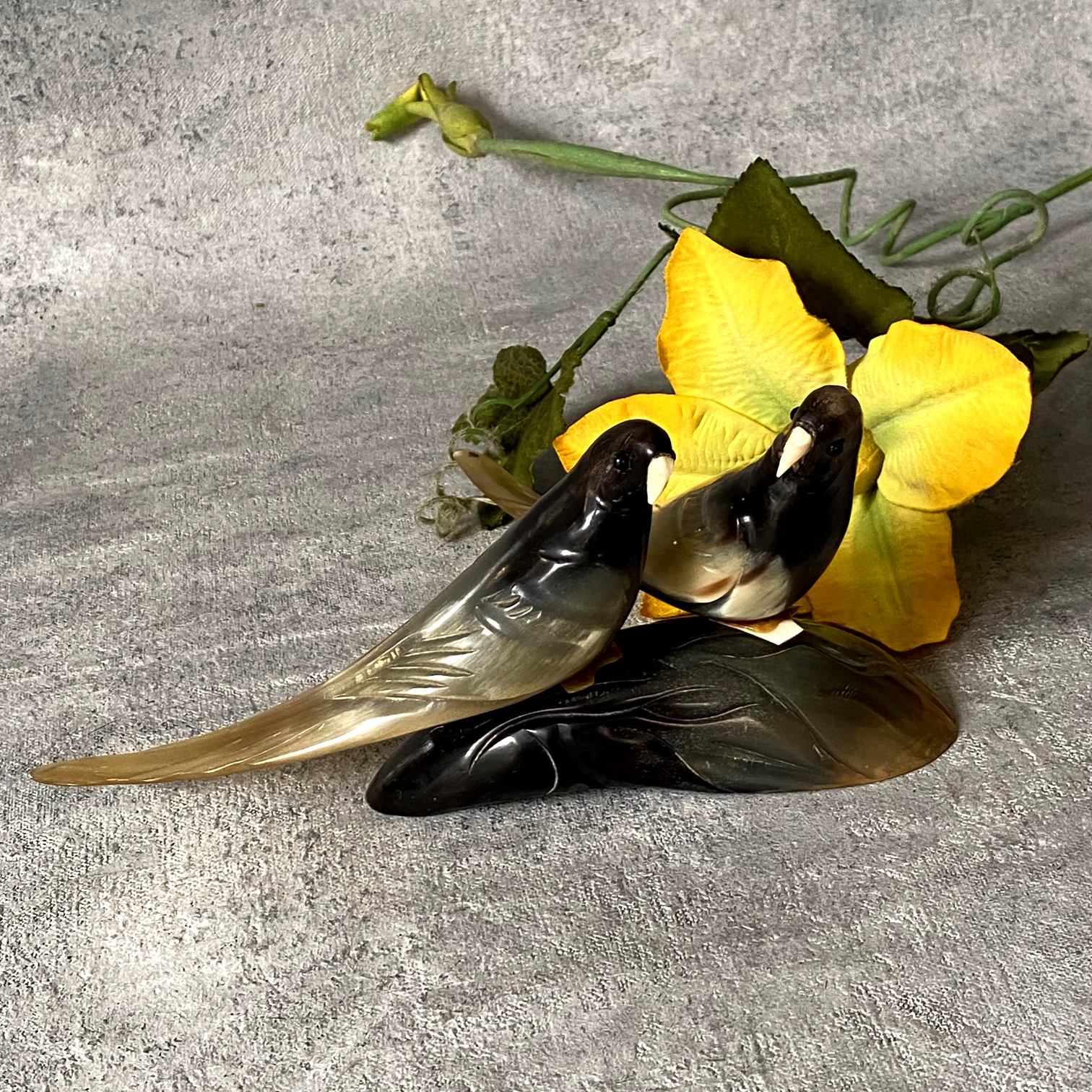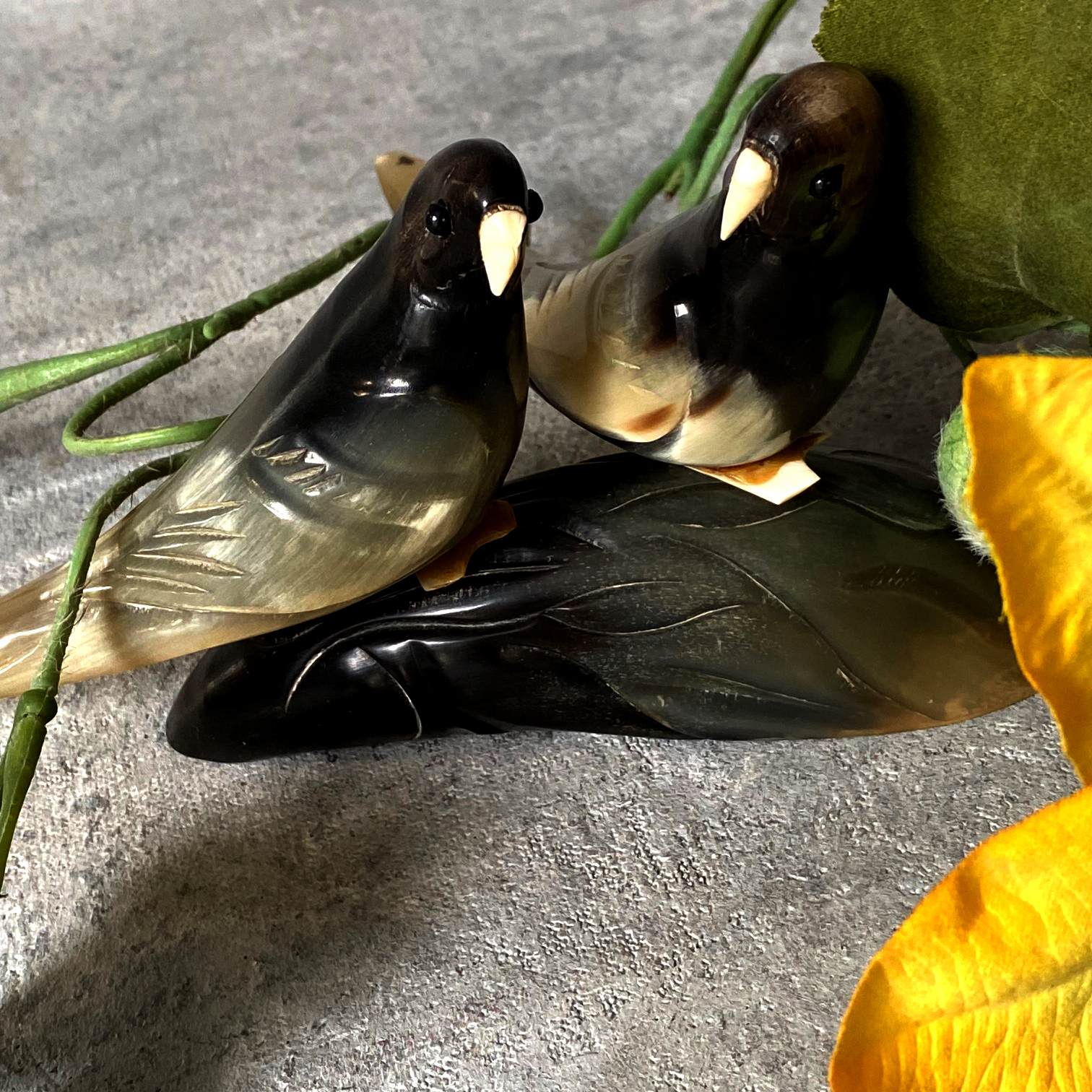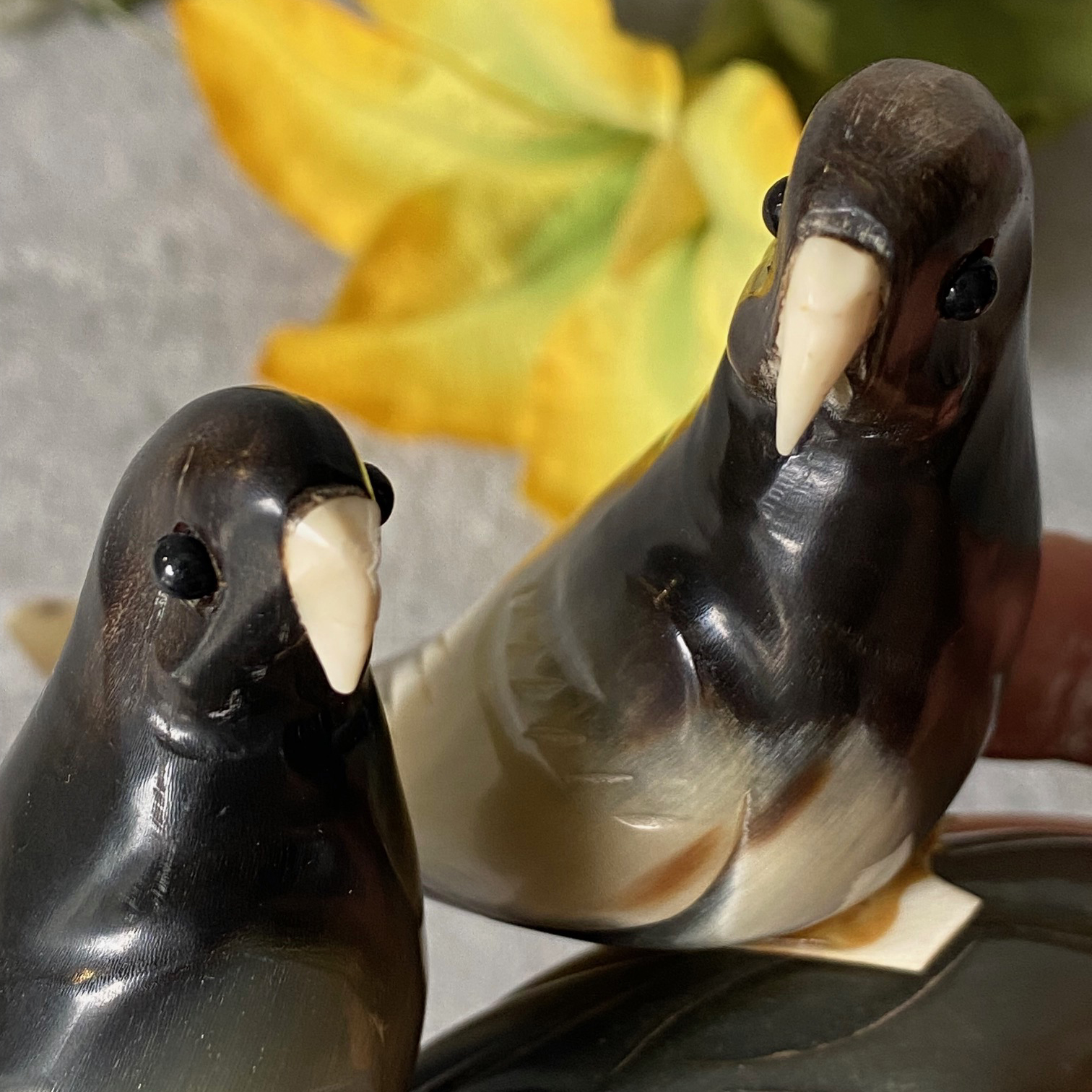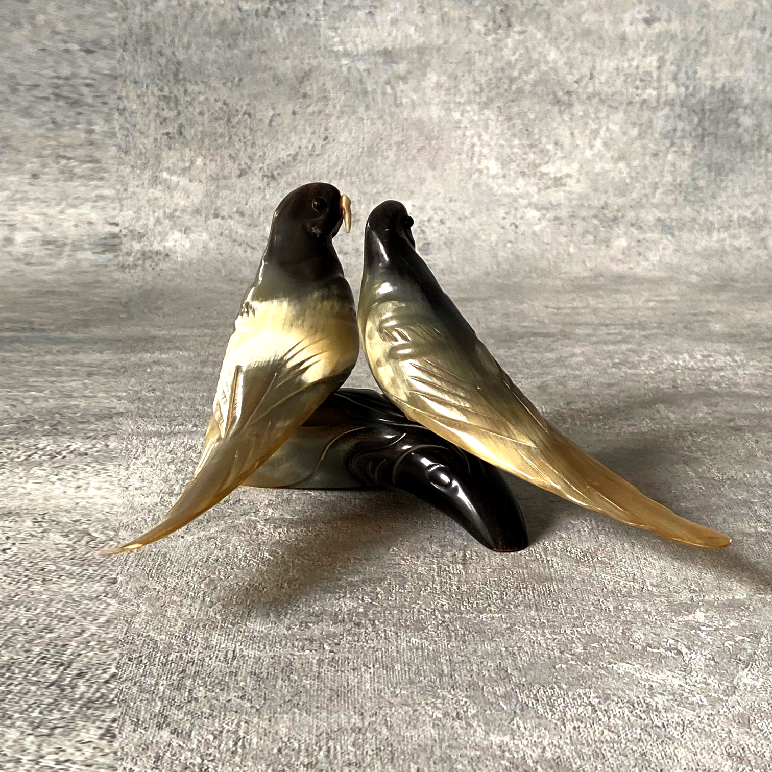 Винтажная кабинетная скульптура «Попугаи-неразлучники»